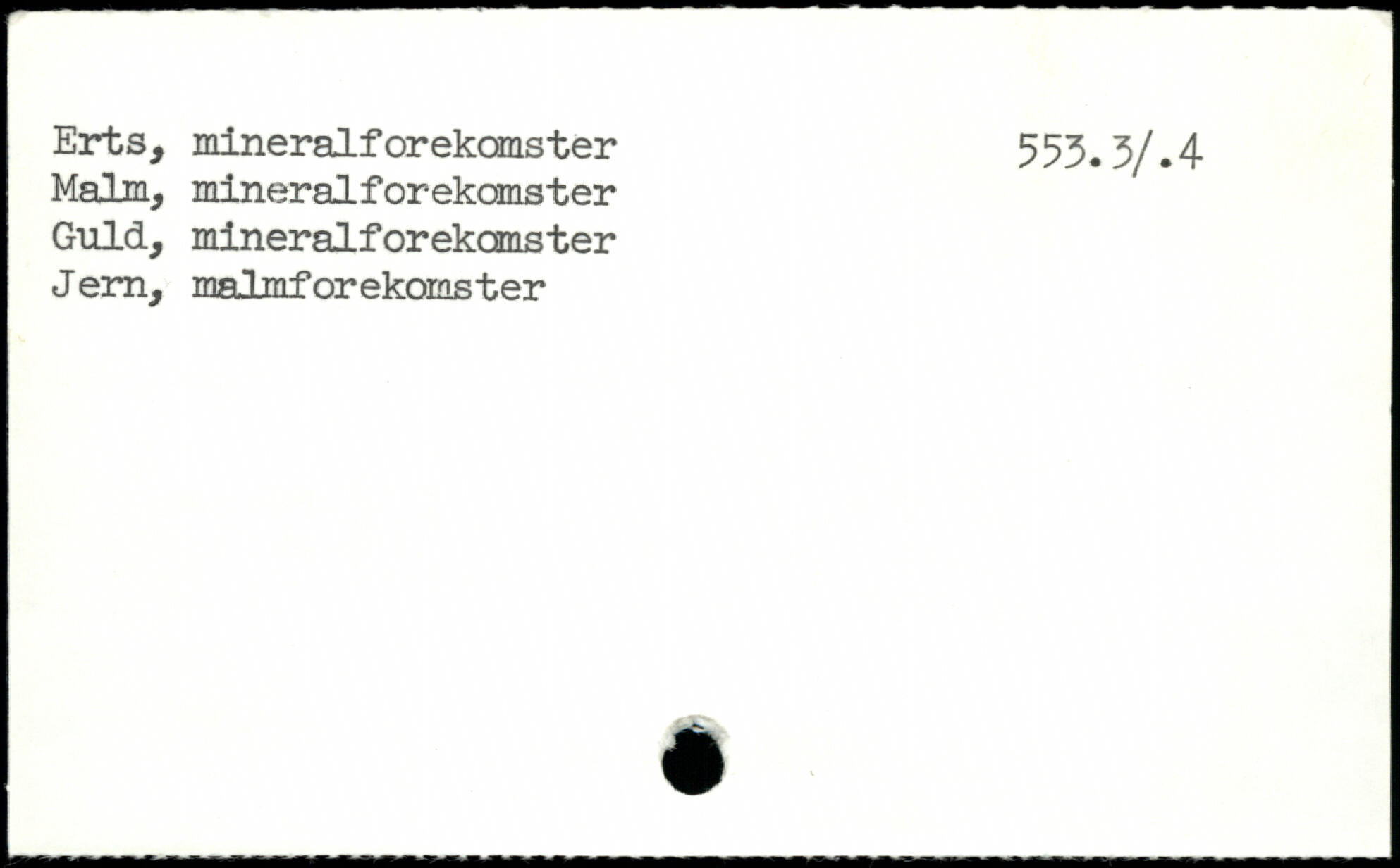 Erts, mineralforekomster 553.3/.4 Malm, mineral forekcmster Guld, mineralforekomster Jern, malmforekomster