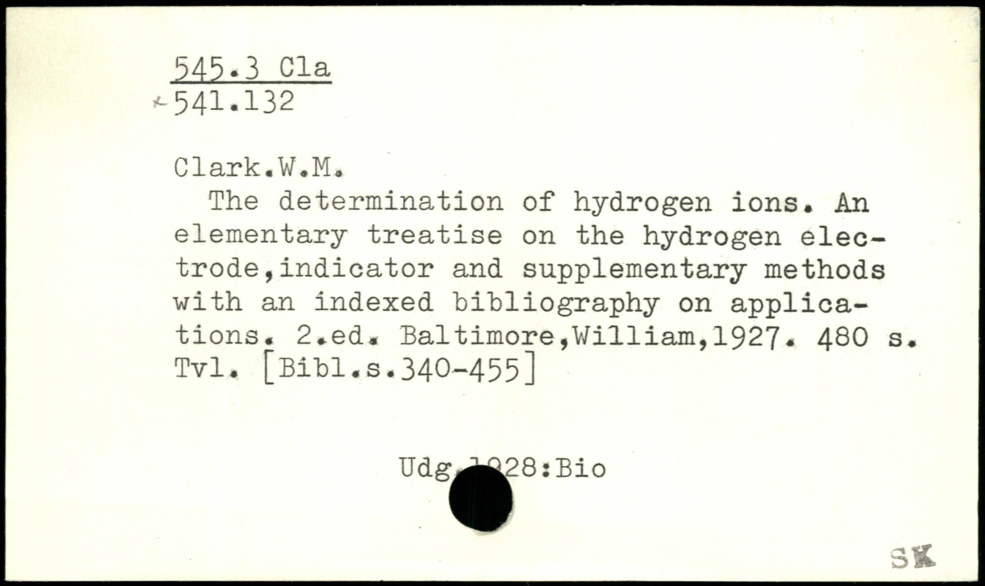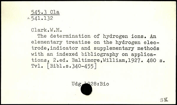 The determination of hydrogen ions. An elementary treatise on the hydrogen electrode , indicator and supplementary methods with an indexed bibliography on applications.