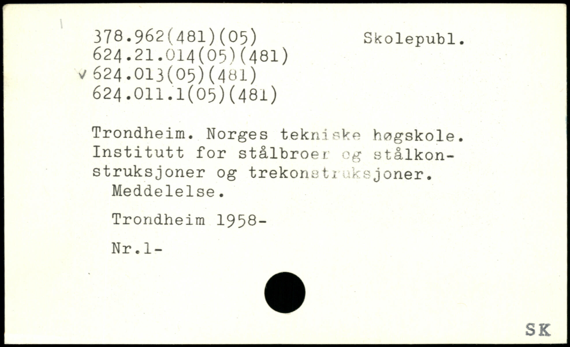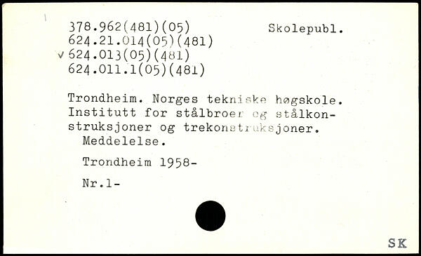 Trondheim. Norges tekniske høgskole. Institutt for stålbroer og stålkon-struksjoner og trekonatruksjoner. Meddelelse.