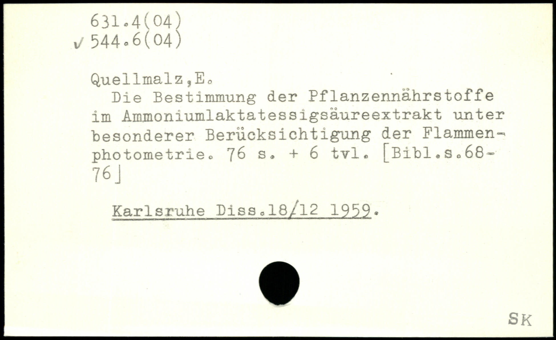 Die Bestimmung der Pflanzennährstoffe im Ammoniumlaktatessigsäureextrakt unter besonderer Berücksichtigung der Flammen-photometrie, ’JG s. + 6 tvl.