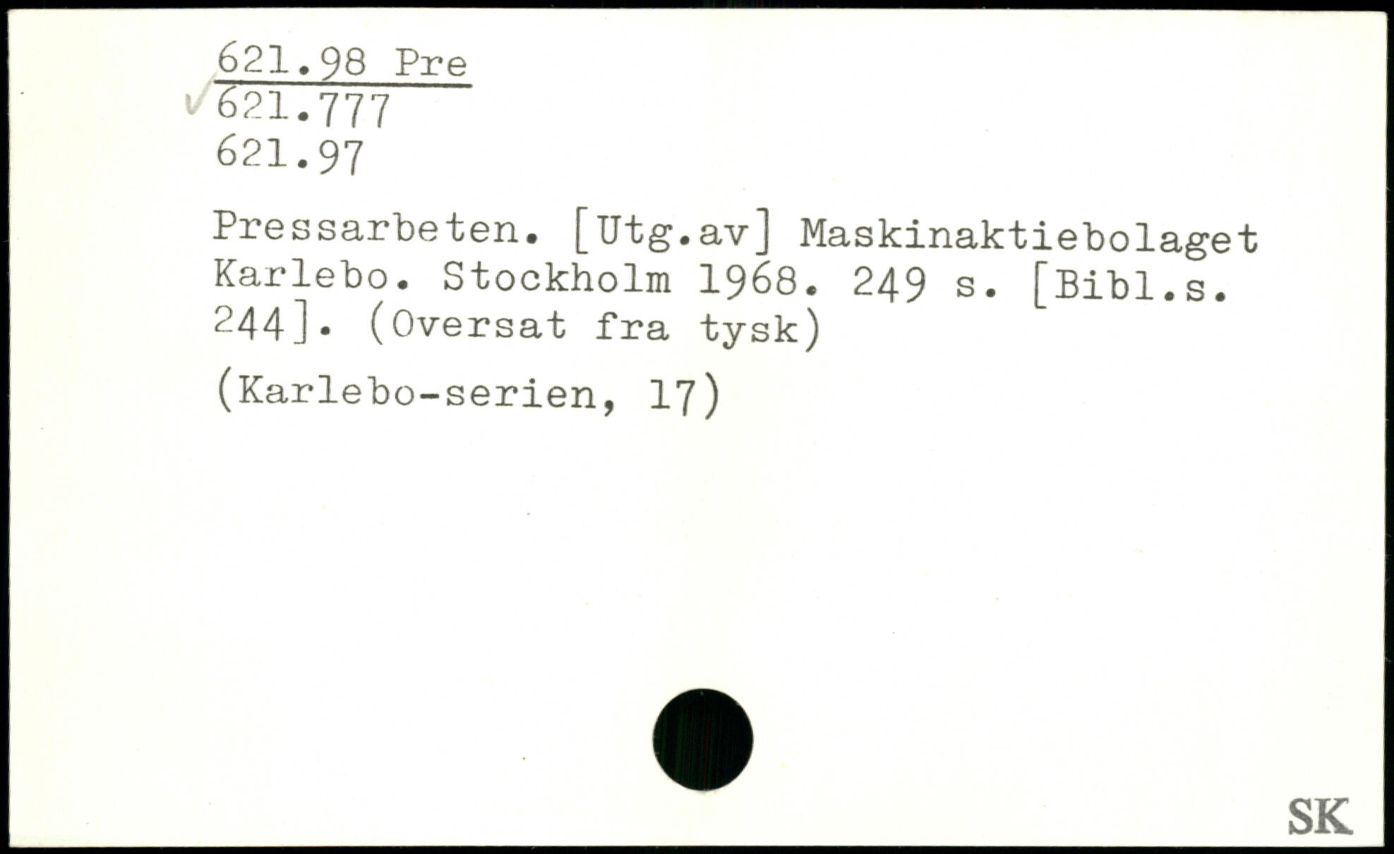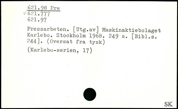 Pressarbeten. [Utg.av] Maskinaktiebolaget Karlebo.