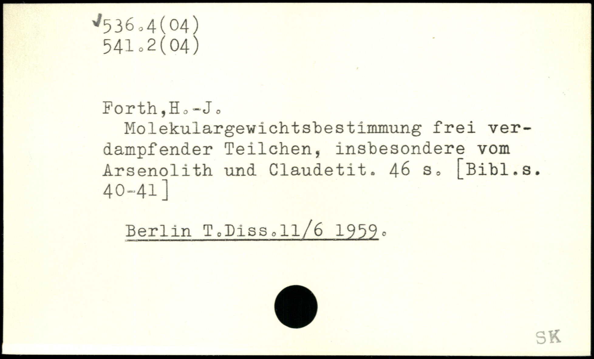 Molekulargewichtsbestimmung frei verdampfender Teilchen, insbesondere vom Arsenolith und Claudetit.