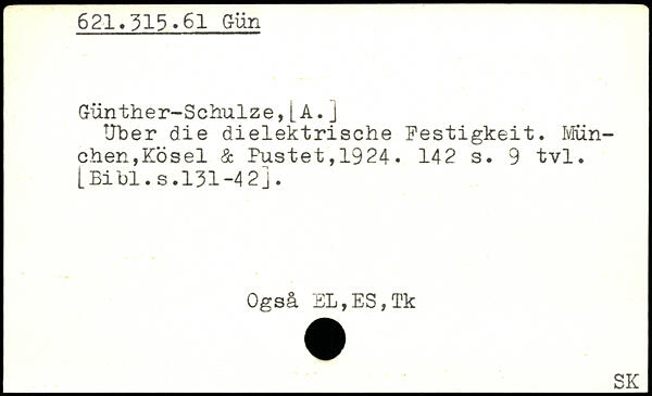 Günther-Schulze, [A. j Über die dielektrische Festigkeit.