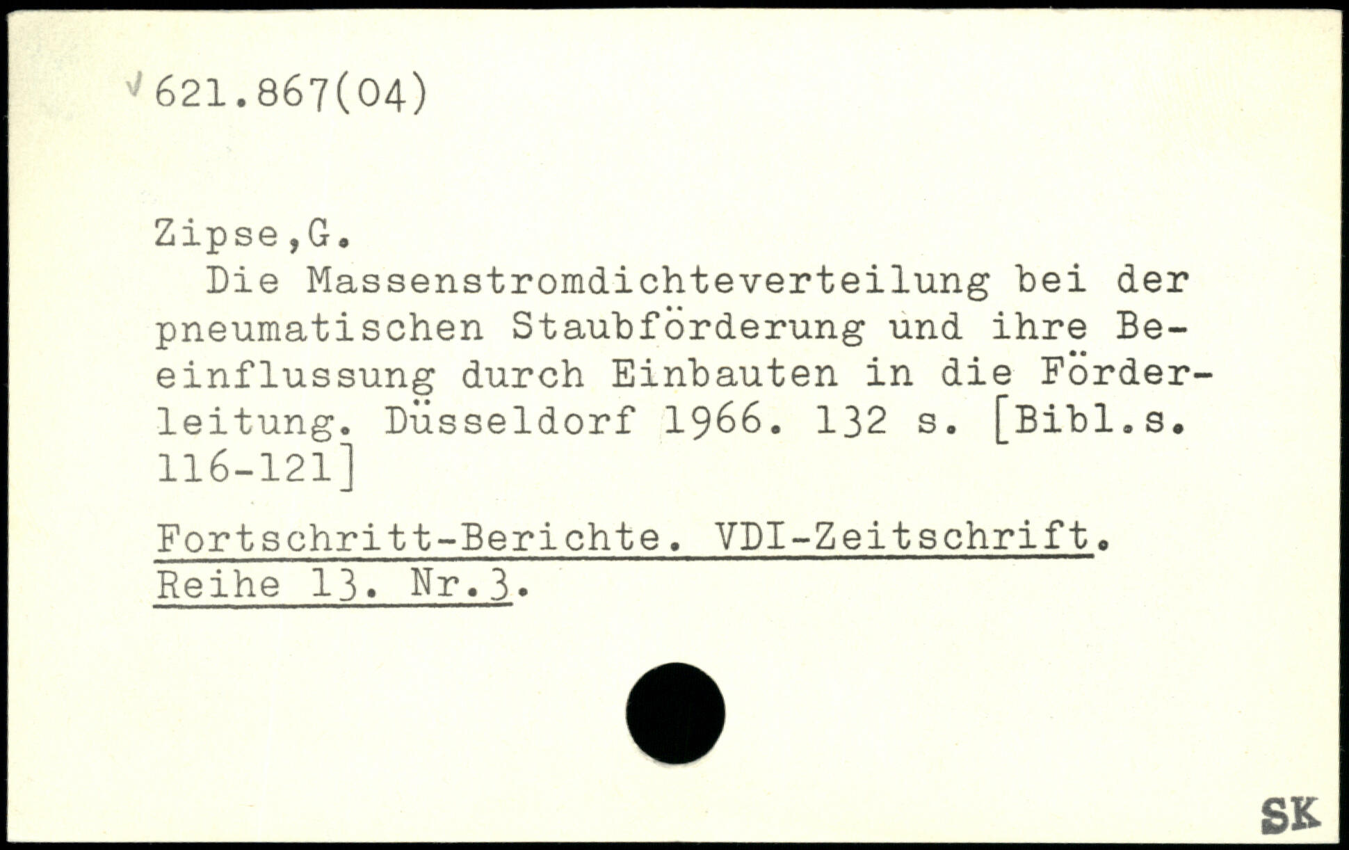 Die Massenstromdichteverteilung bei der pneumatischen Staubförderung und ihre Beeinflussung durch Einbauten in die Förderleitung. Düsseldorf 1966.