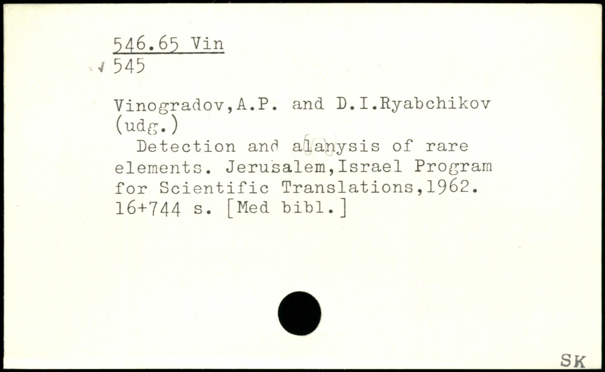 Detection and alanysis of rare elements. Jerusalem,Israel Program for Scientific Translations,1962.