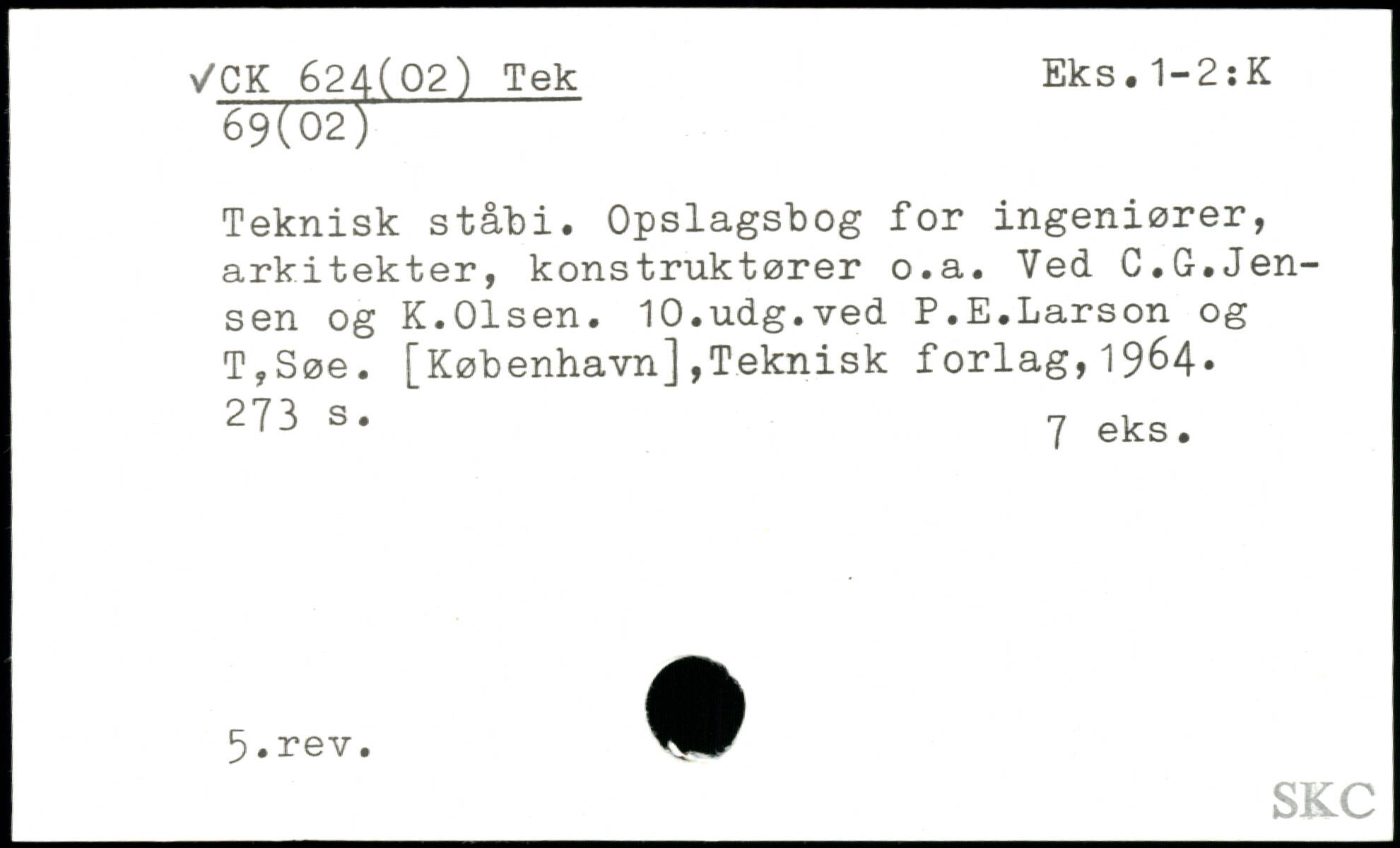 Teknisk ståbi. Opslagsbog for ingeniører, arkitekter, konstruktører o.a. Ved C.G.Jensen og K.Olsen.