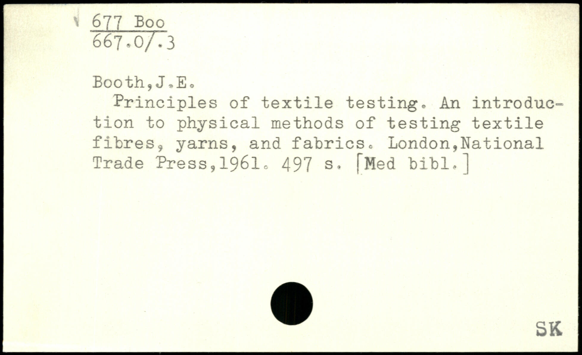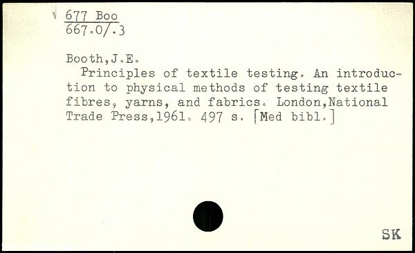 Booth,J,Eo Principles of textile testing. An introduction to physical methods of testing textile fibres, yarns, and fabrics.