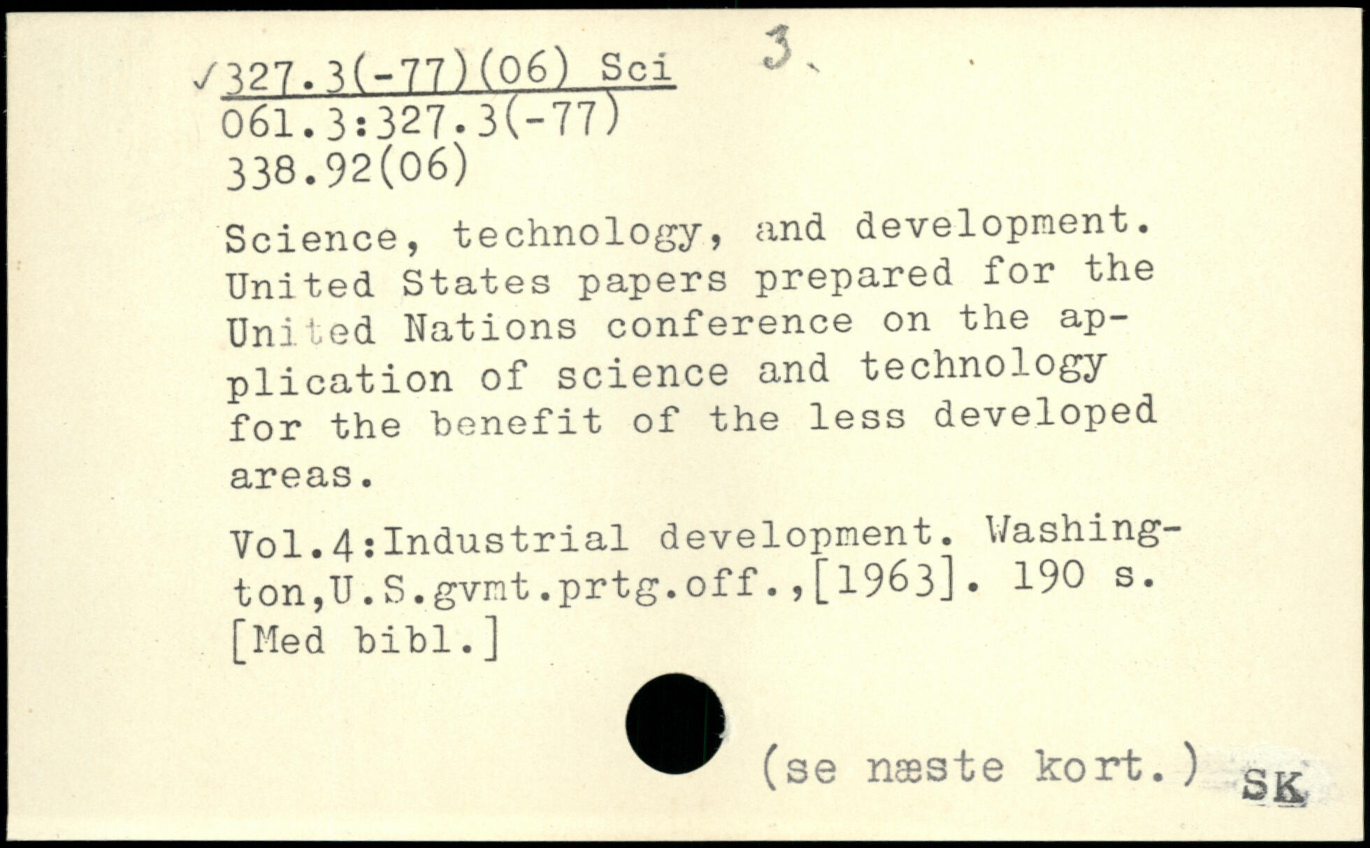 Science, technology, and development. United States papers prepared for the United Nations conference on the application of science and technology for the benefit of the less developed areas.