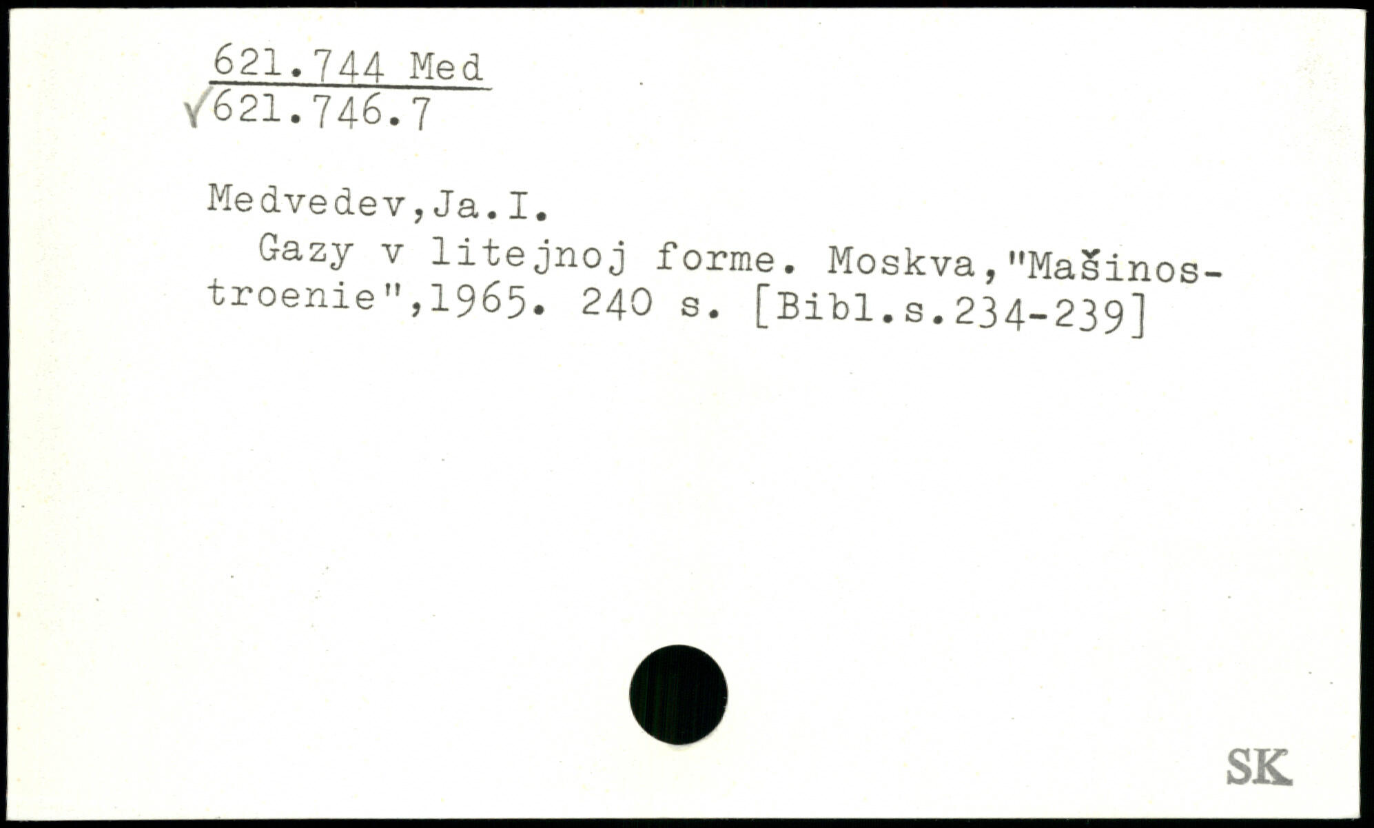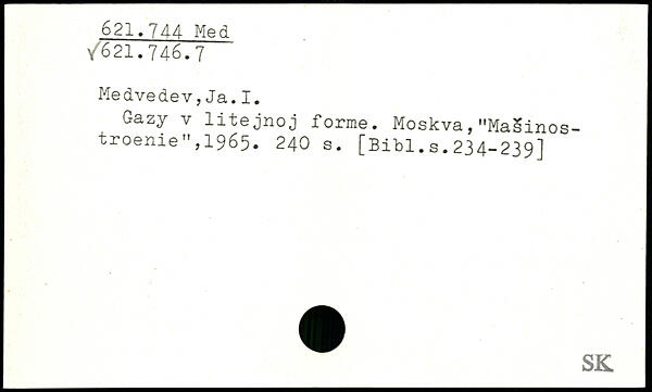 Medvedev,Ja.I. Gazy v litejnoj forme. Moskva,"Masinos-troenie",1965.