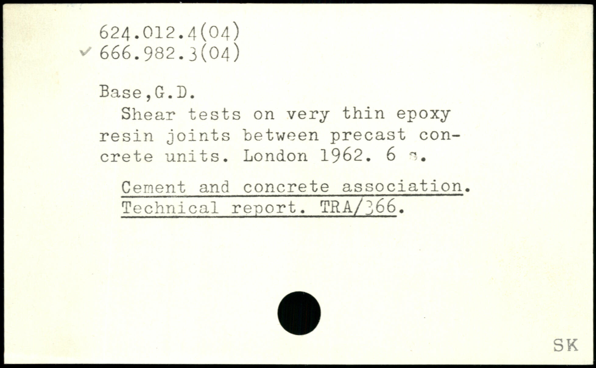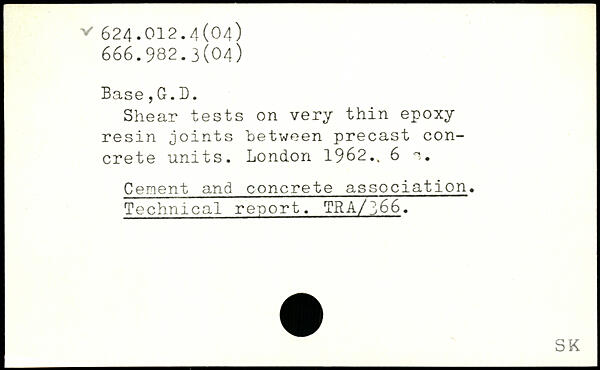 Shear tests on very thin epoxy resin joints between precast concrete units.