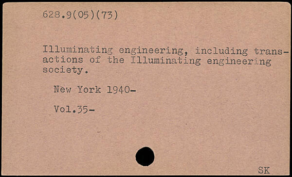 Illuminating engineering, including transactions of the Illuminating engineering society.