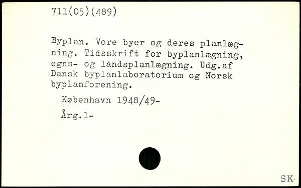 Byplan. Vore "byer og deres planlæg-ning. Tidsskrift for "byplanlægning, egns- og landsplanlægning. Udg.af Dansk byplanlaboratorium og Norsk byplanforening.