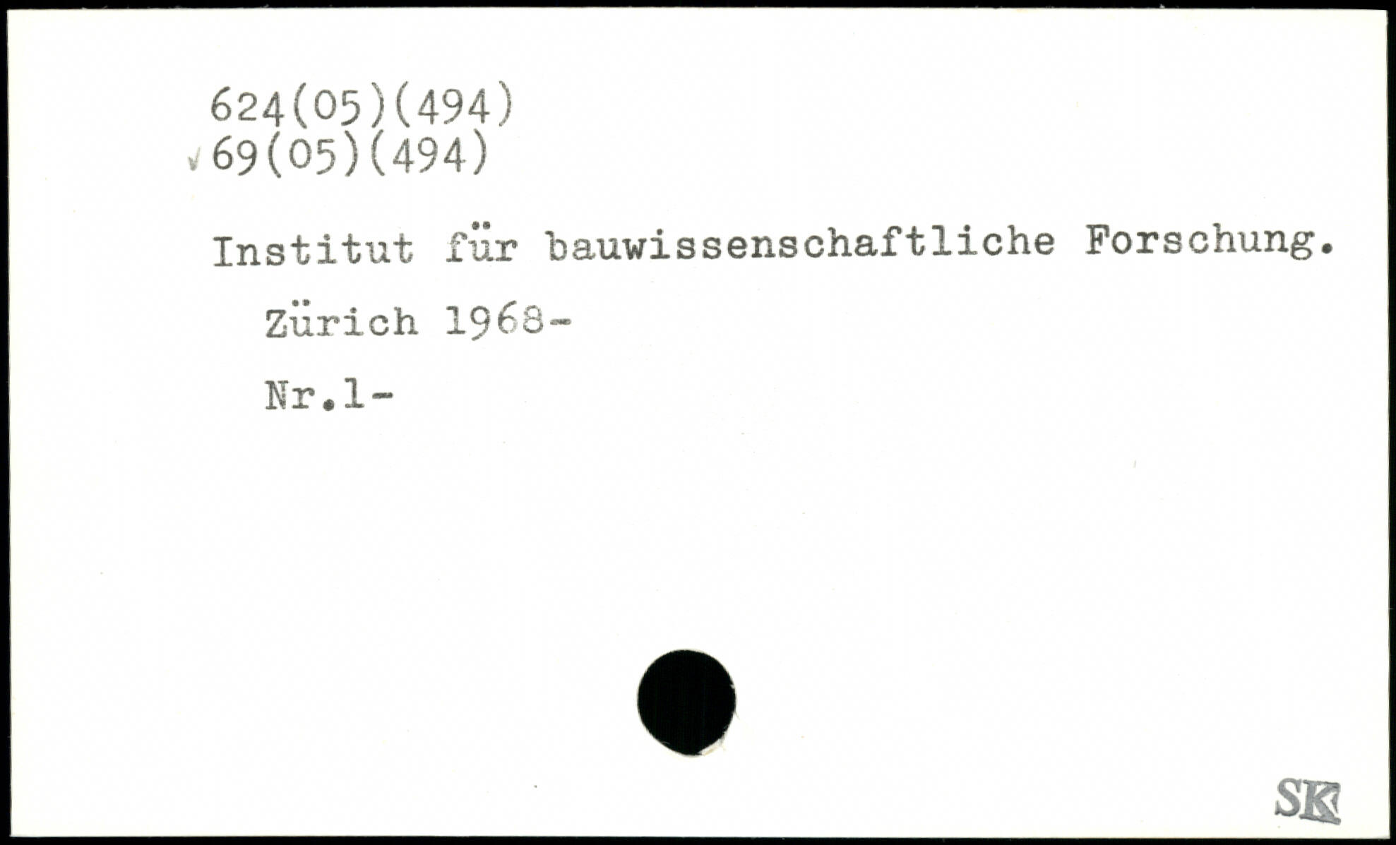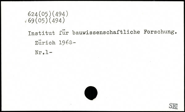 Institut für bauwissenschaftliche Forschung. Zürich 1968“ Nr.l- __ss