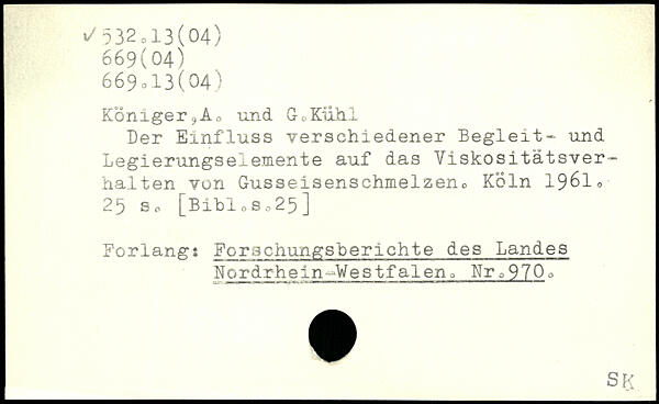 Der Einfluss verschiedener Begleit, und Legierungselemente auf das Yiskositatsver-halten ?on Gusseisenschmelzeno