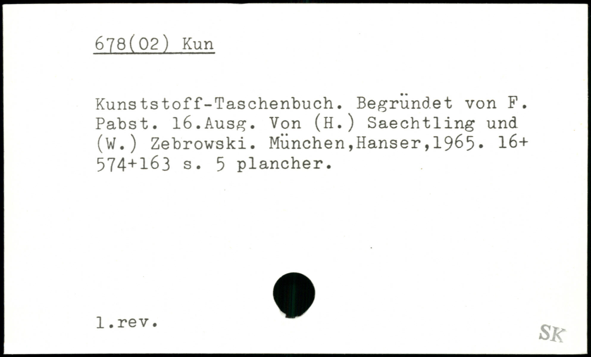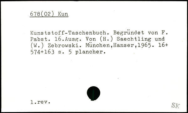 Kunststoff-Taschenbuch. Begründet von F. Pabst. 16.Ausg. Von (H.) Saechtling und (W.) Zebrowski.
