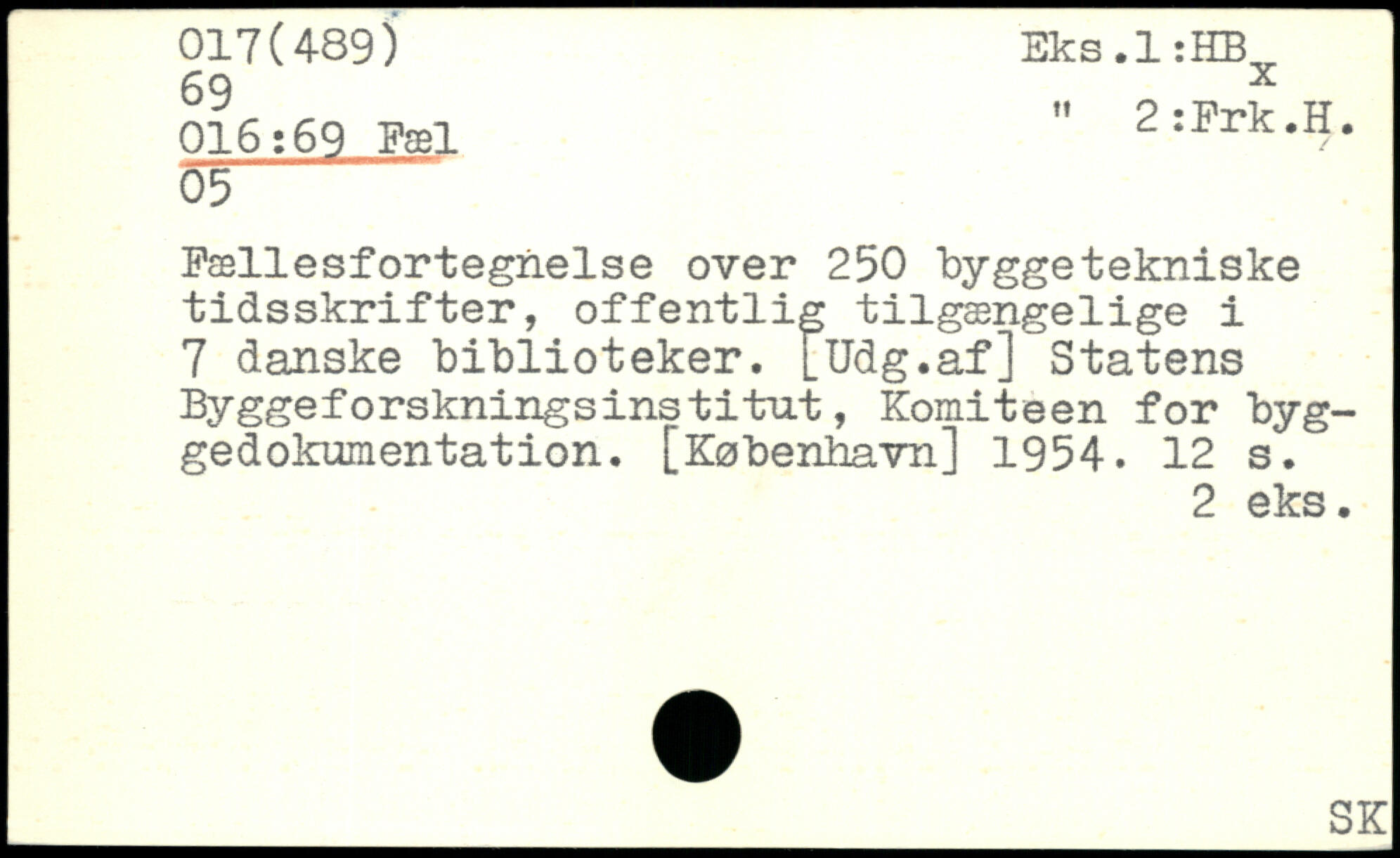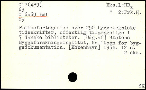 Fællesfortegnelse over 250 byggetekniske tidsskrifter, offentlig tilgængelige i 7 danske biblioteker. [Udg.af] Statens Byggeforskningsinstitut, Komiteen for bygge dokumentation.