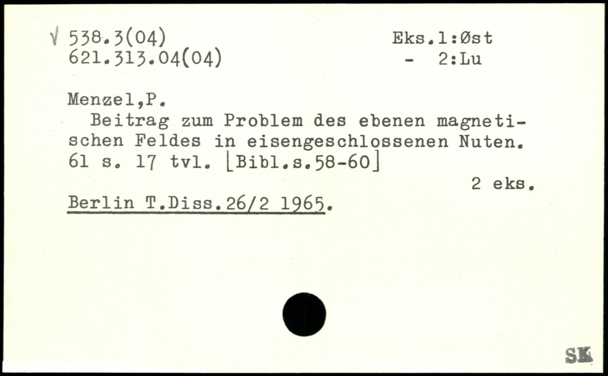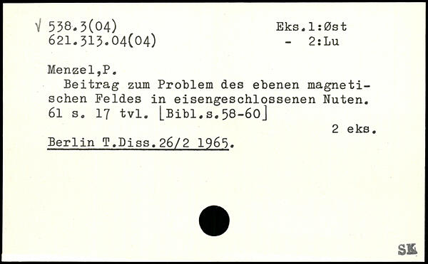 Beitrag zum Problem des ebenen magnetischen Feldes in eisengeschlossenen Nuten.