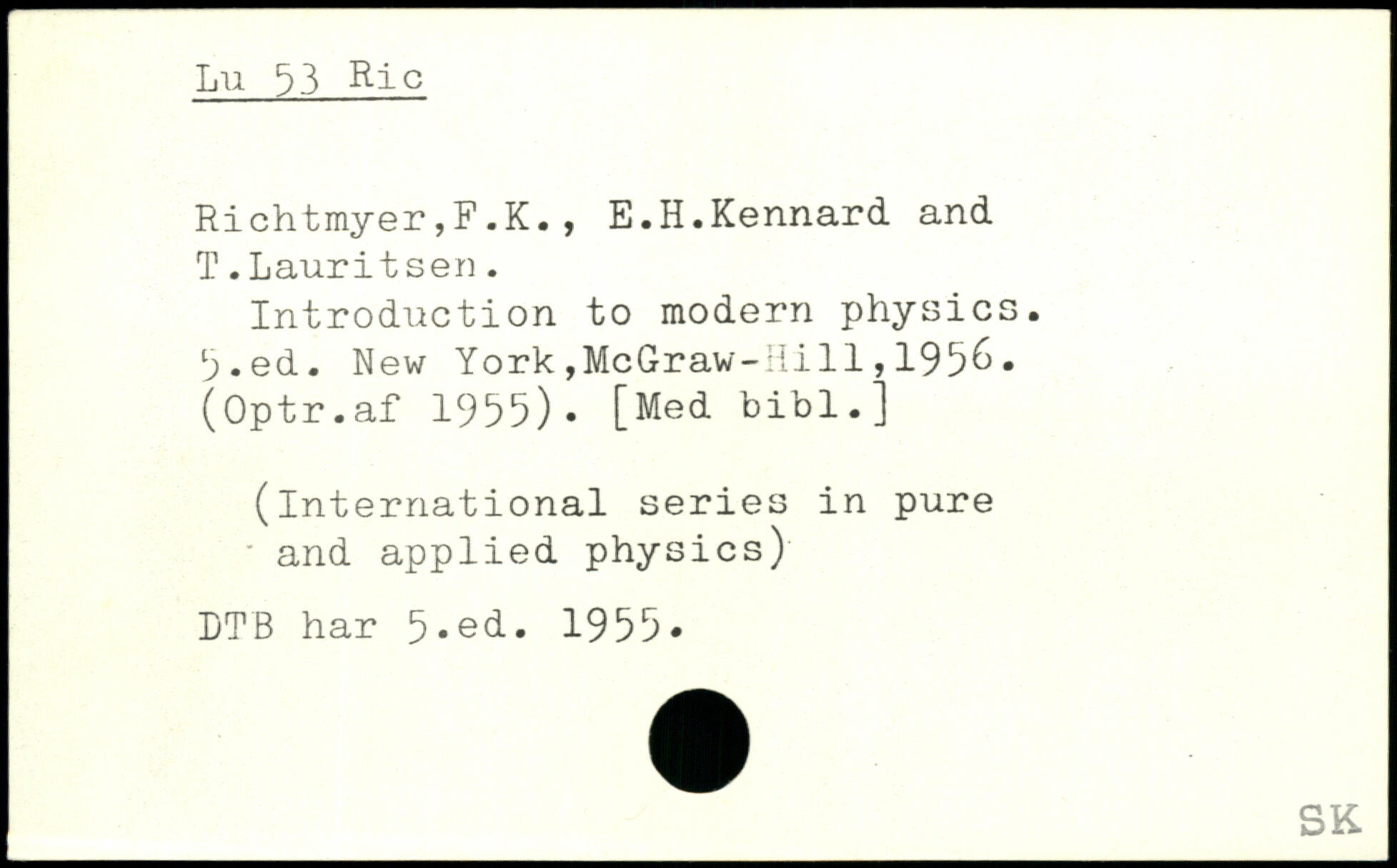 Richtmyer,F.K., E.H.Kennard and T.Lauritsen. Introduction to modern physics. lj).ed.
