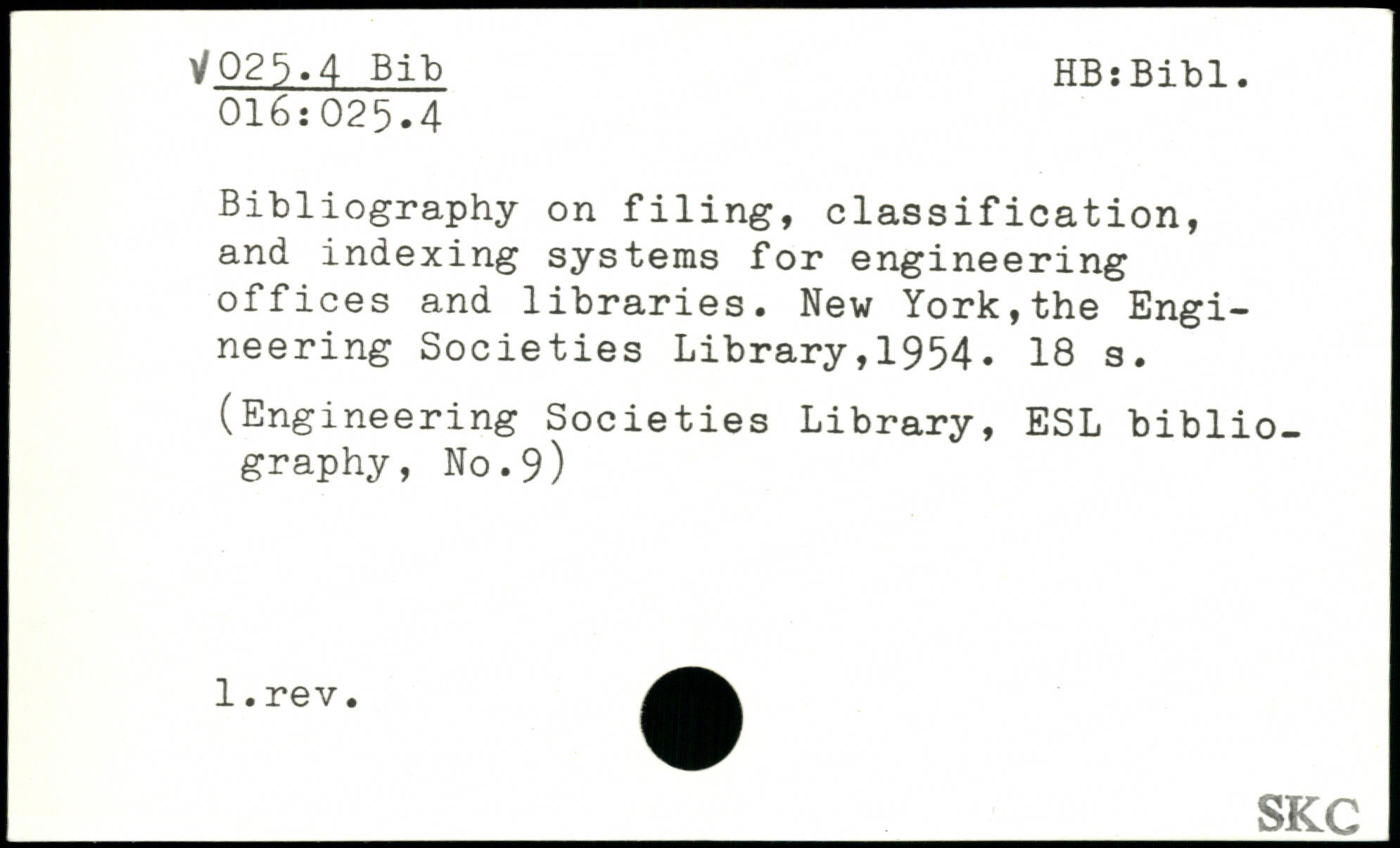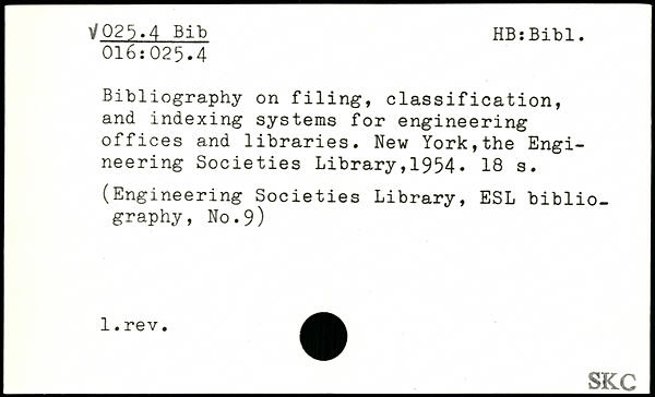 Bibliography on filing, classification, and indexing systems for engineering offices and libraries. New York,the Engineering Societies Library,1954.