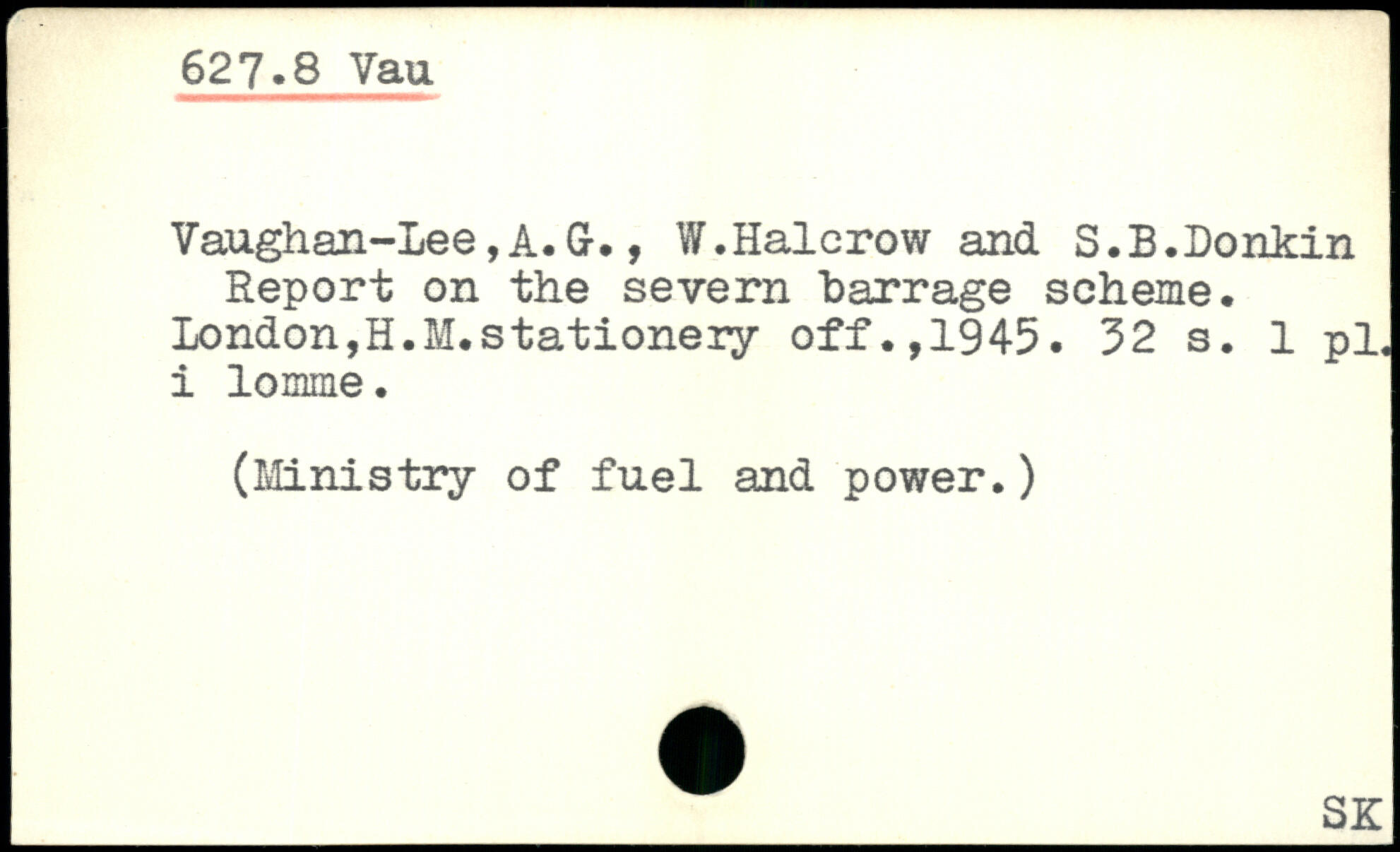 Vaughan-Lee,A.Gr., W.Halcrow and S.B.Donkin Report on the Severn barrage scheme. London,H.M.stationery off.,1945.