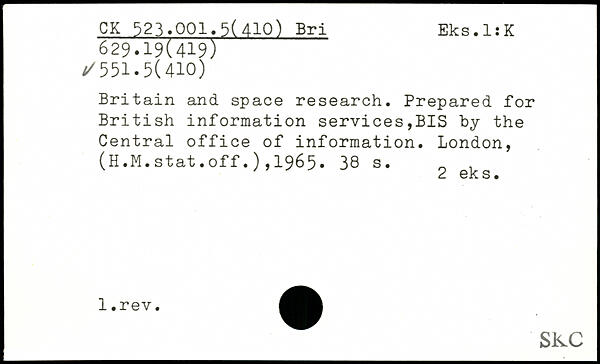 Britain and space research. Prepared for British information services,BIS by the Central office of information. London, (H.M.stat.off.),1965.