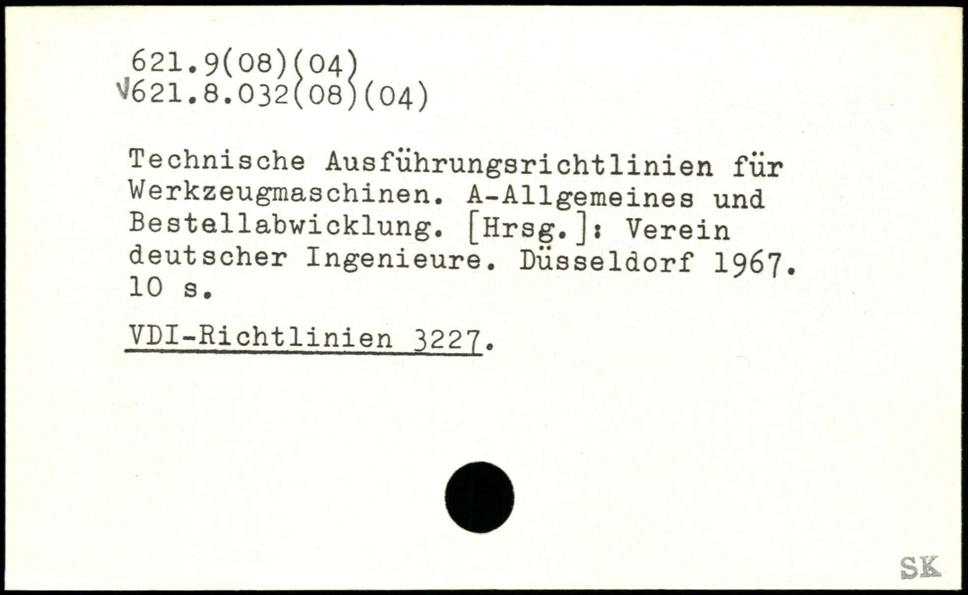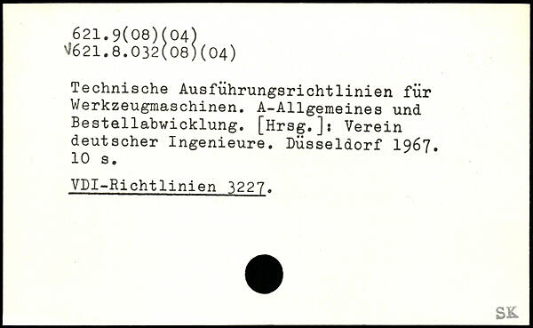 Technische Ausfiihrungsrichtlinien für Werkzeugmaschinen. A-Allgemeines und Bestellabwicklung. [Hrsg.jj Verein deutscher Ingenieure. Düsseldorf 1967.