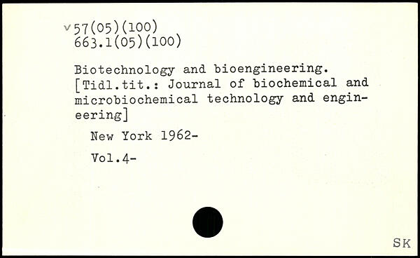 Biotechnology and bioengineering. [Tidl.tit.s Journal of biochemical and microbiochemical technology and engineering]