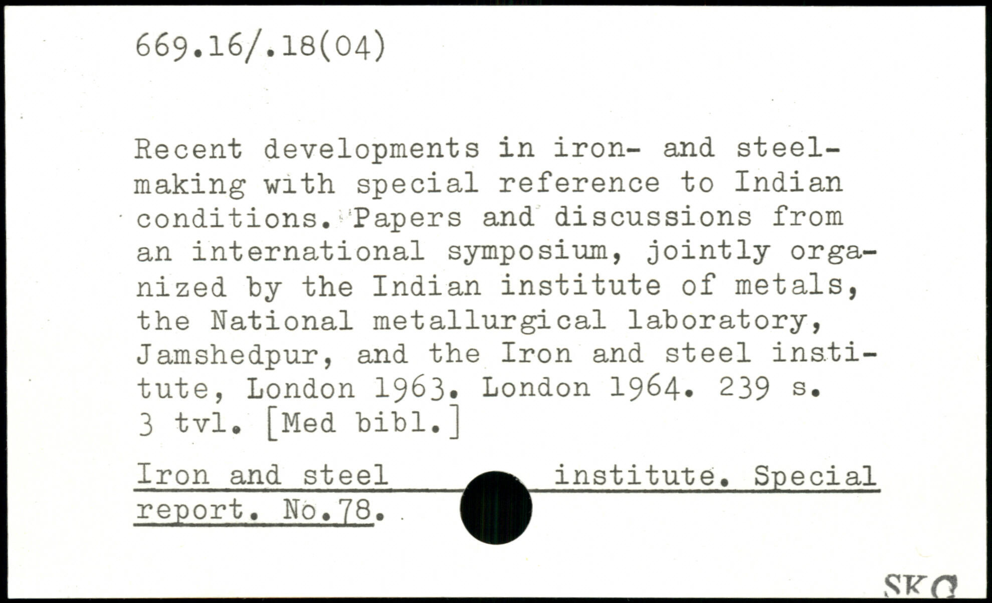 Recent developments in iron- and steelmaking with special reference to Indian conditions. ^‘Papers and discussions from an international symposium, jointly organized by the Indian institute of metals, the National metallurgical laboratory, Jamshedpur, and the Iron and steel institute
