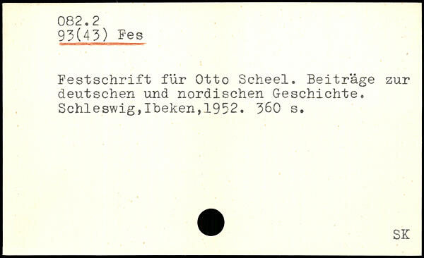 Festschrift für Otto Scheel. Beiträge zur deutschen und nordischen Geschichte.