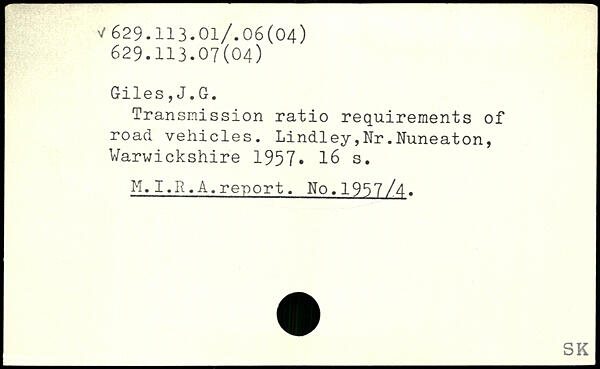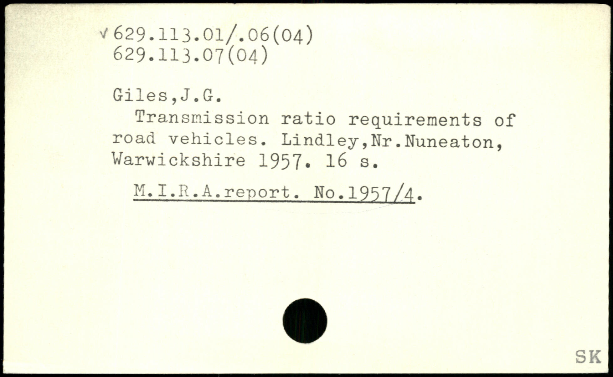 Transmission ratio requirements of road vehicles. Lindley,Nr.Nuneaton, Warwickshire 1957