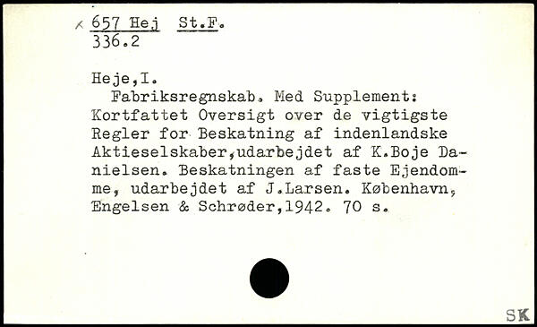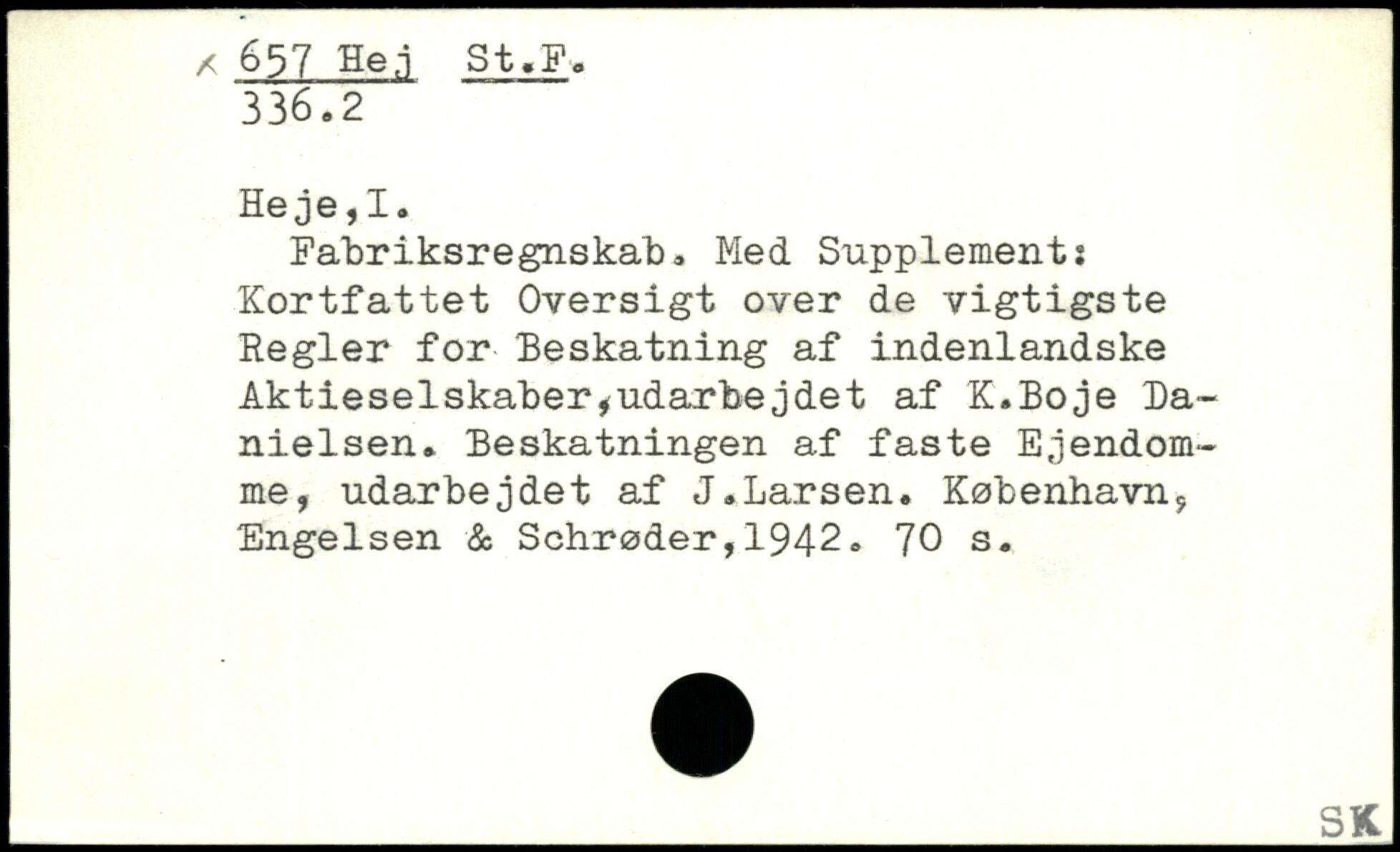 Pabriksregnskab. Med Supplement: Kortfattet Oversigt over de vigtigste Regler for Beskatning af indenlandske Aktieselskaber,udarbejdet af K.Boje Da-nielsen. Beskatningen af faste Ejendomme, udarbejdet af J.Larsen.