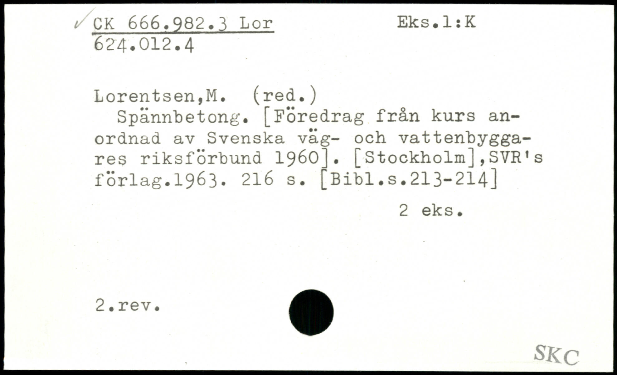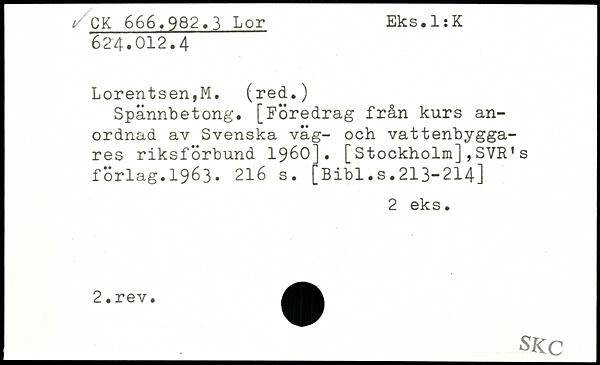 Spännbetong. [Föredrag från kurs anordnad av Svenska väg- och vattenbyggares riksförbund 1960]. [Stockholm],SVR's förlag.1963.
