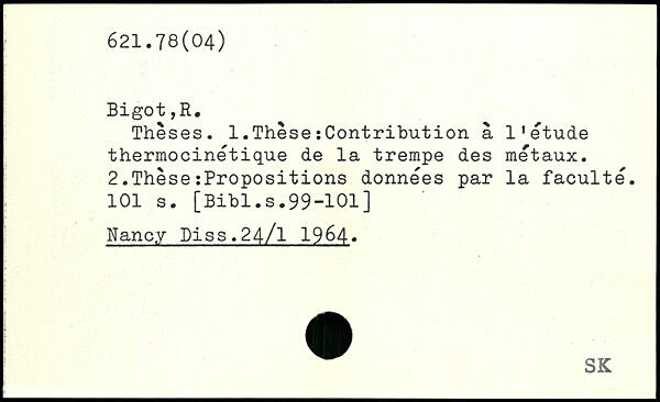 Thèses. 1.ThèseïContribution à l'étude thermocinétique de la trempe des métaux. 2.ThèseîPropositions données par la faculté.