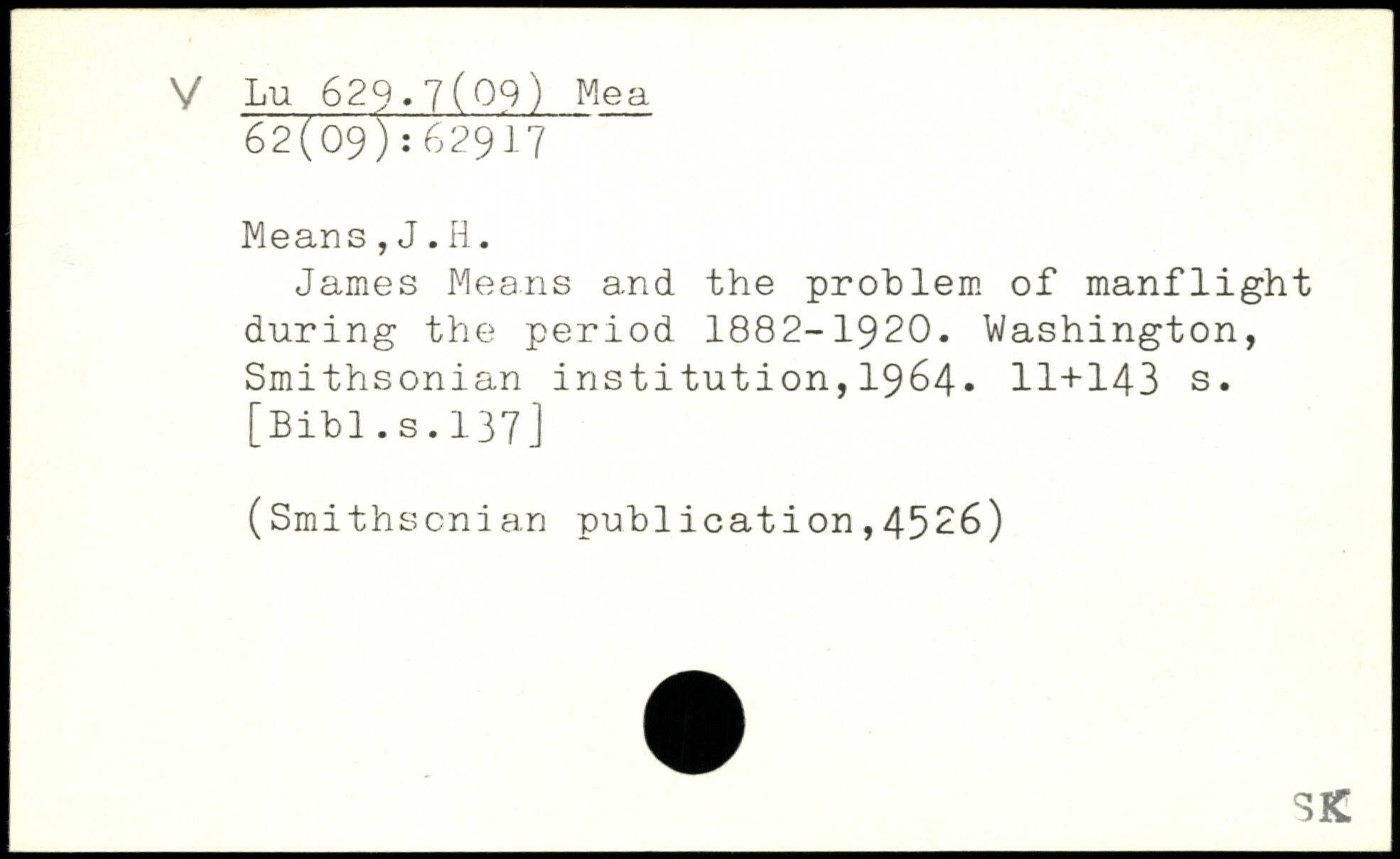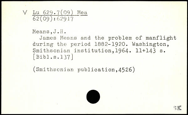 James Means and the problem of manflight during the period 1882-1920.