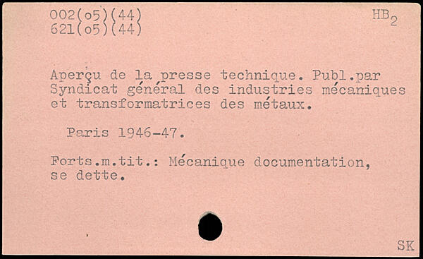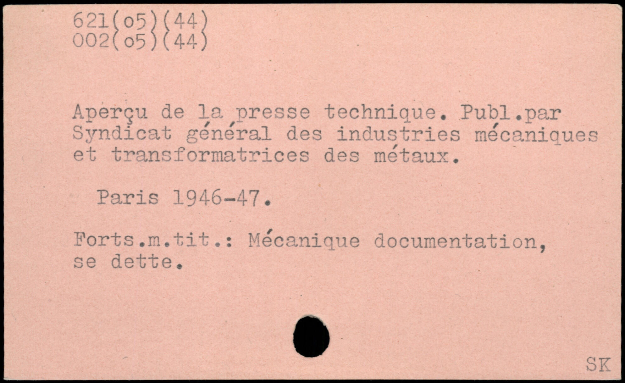 Aperçu de la ^presse technique. Publ.par Syndicat général des industries mécaniques et transformatrices des métaux.