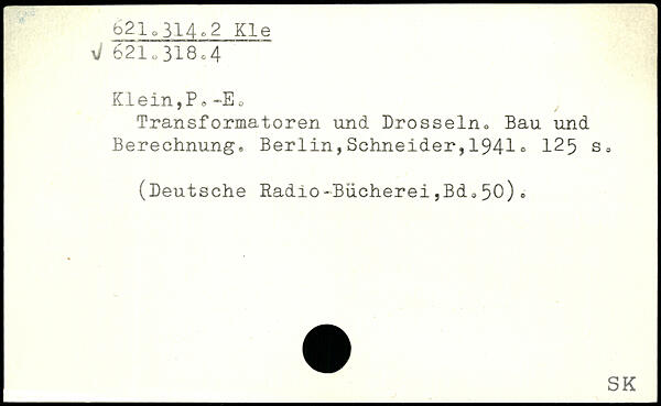 Transformatoren und Drosseln, Bau und Berechnung, Berlin,Schneider,1941. 125 s, (Deutsche Radio'Bücherei,Bd0 50)