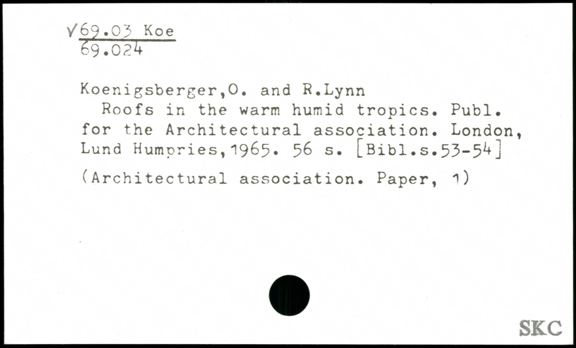 Roofs in the warm humid tropics. Publ. for the Architectural association.
