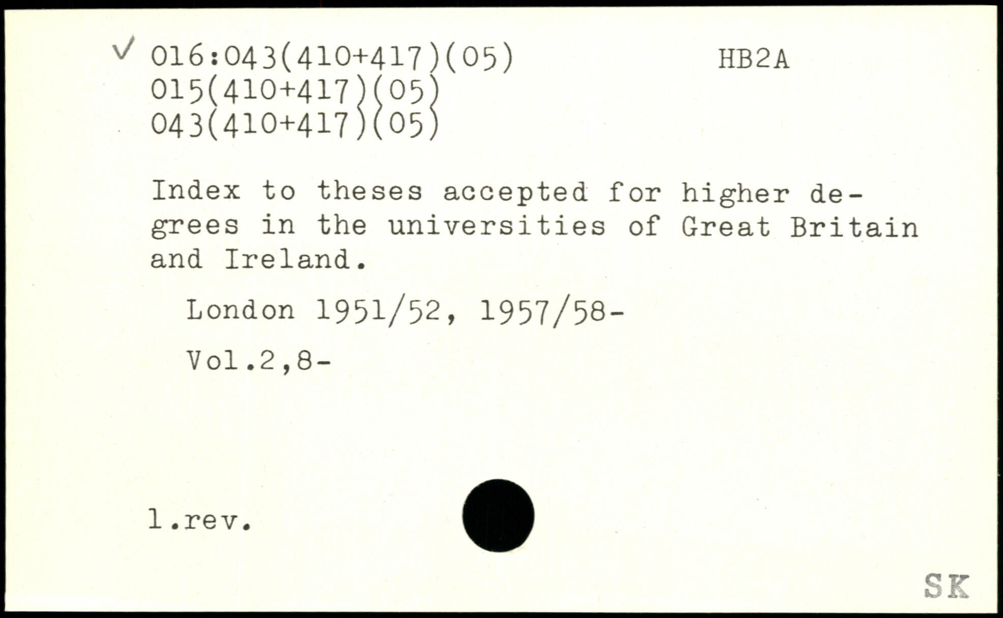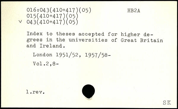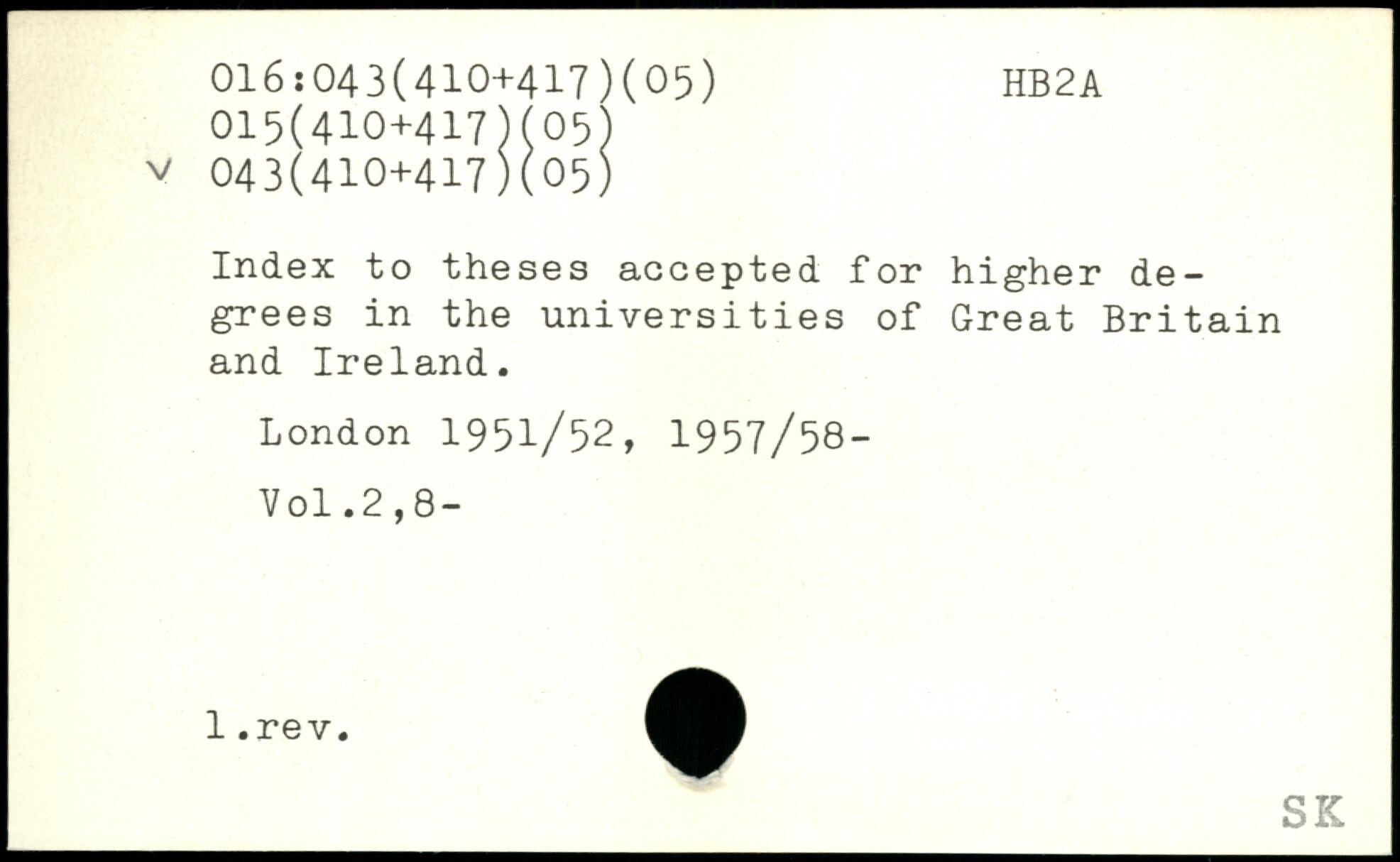 Index to theses accepted for higher degrees in the universities of Great Britain and Ireland.