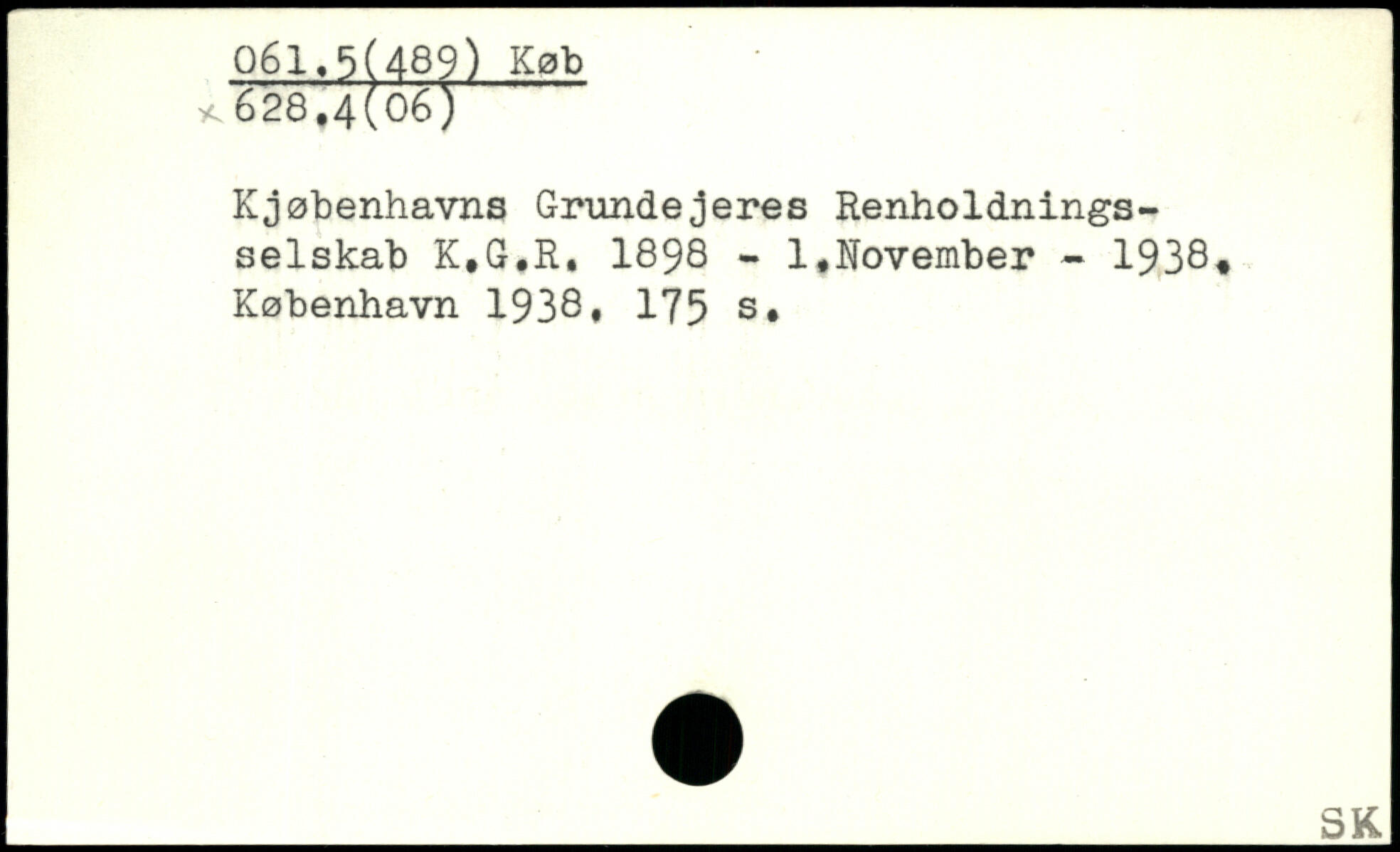 Kjøbenhavns Grundejeres Renholdningsselskab K,G,R, 1898 - 1,November - 1938