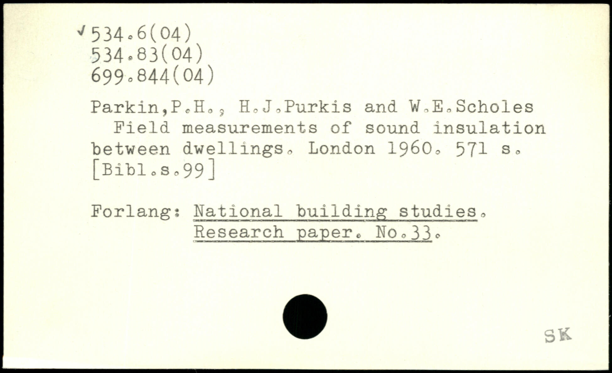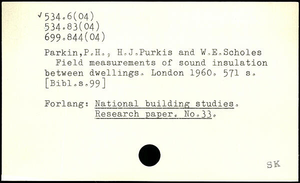 Parkin,P^EL s HoJoPurkis and W.E.., Scholes Field measurements of sound insulation between dwellings