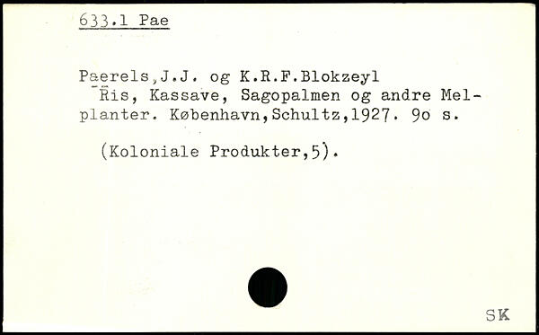 Ris, Kassave, Sagopalmen og andre Mel-planter.