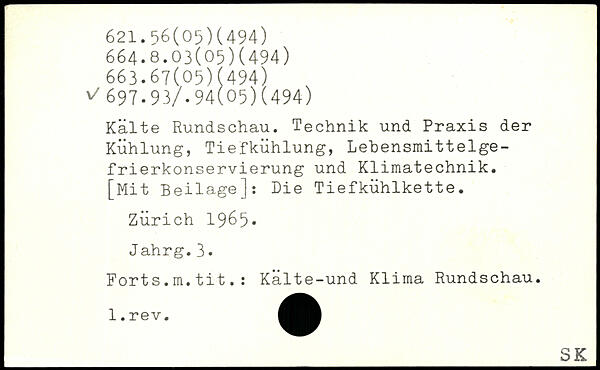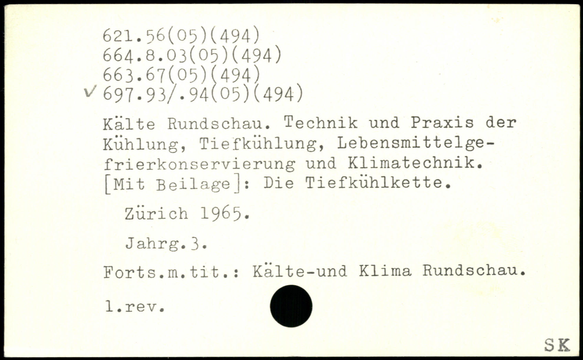 Kälte Rundschau. Technik und Praxis der Kühlung, Tiefkühlung, Lebensmittelge-frierkonservierung und Klimatechnik.