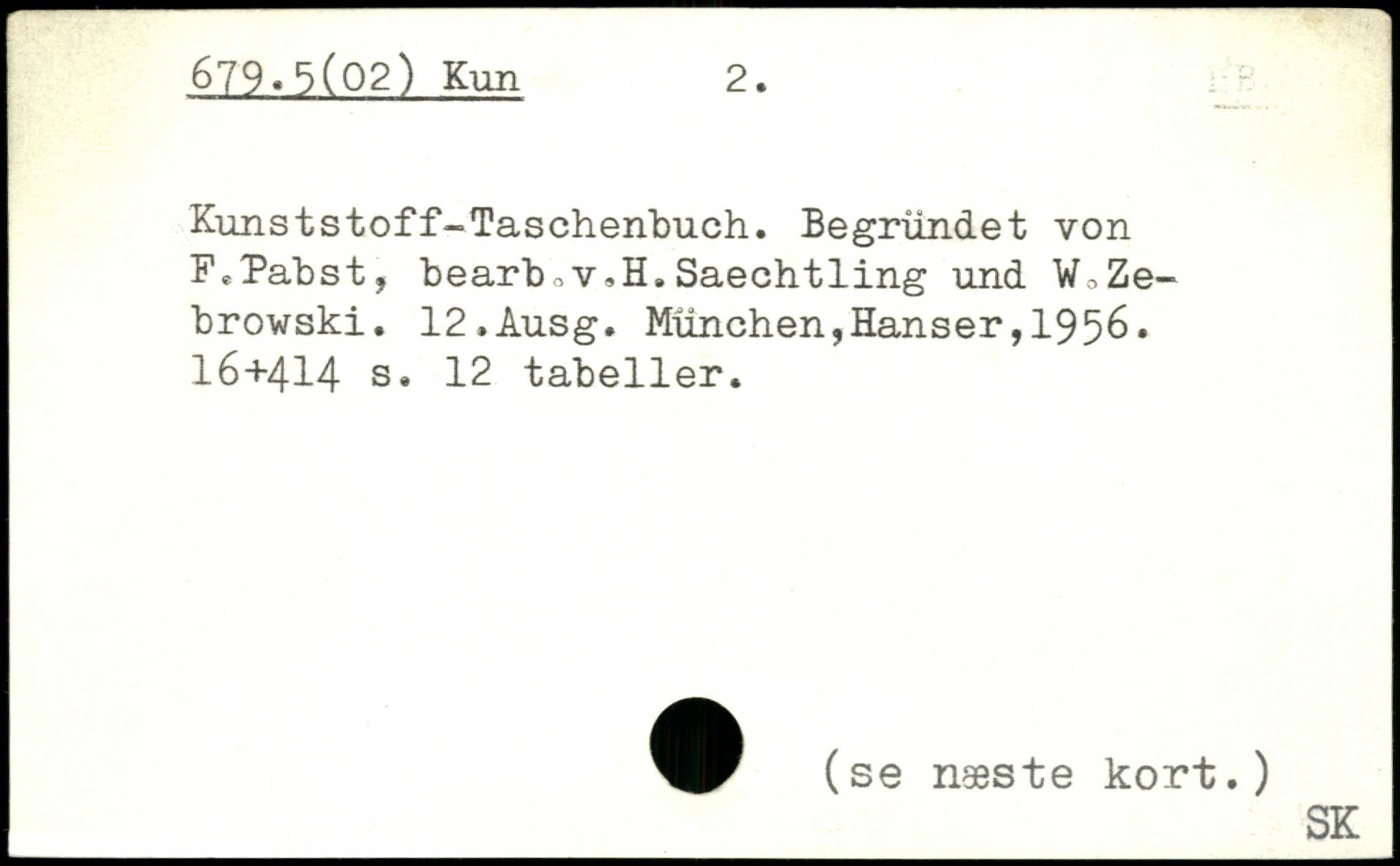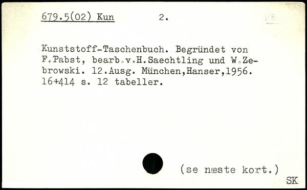 Kunststoff-Taschenbuch. Begrundet von FePabst, bearboV.H.Saechtling und W.Ze-browski. 12.Ausg.