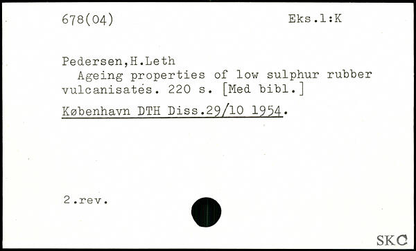 Pedersen,H.Leth Ageing properties of low sulphur rubber vulcanisates.
