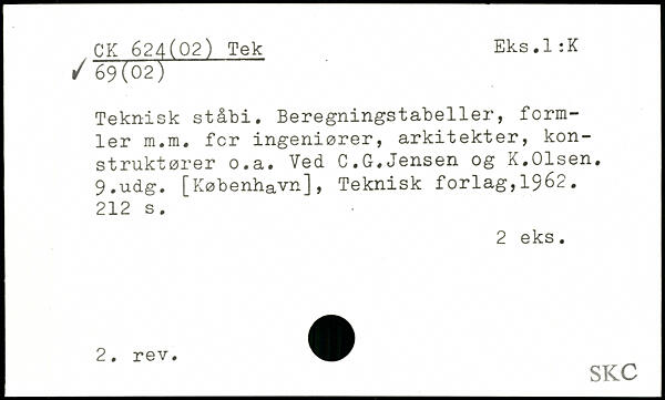 Teknisk ståbi. Beregningstabeller, formler m.m. fer ingeniører, arkitekter, konstruktører o.a. Ved C.G.Jensen og K.Olsen.