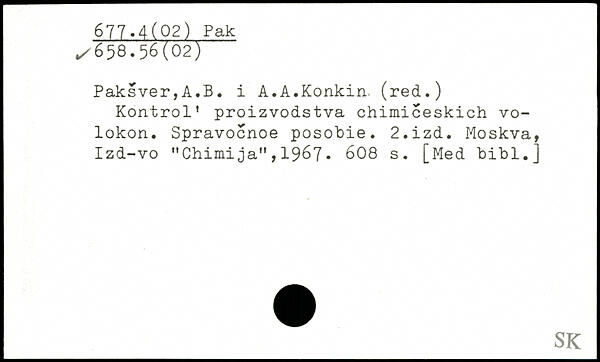 Kontrol. proizvodstva chimiceskich vo-lokon. Spravocnoe posobie. 2.izd. Moskva, Izd-vo "Chimija",1967.
