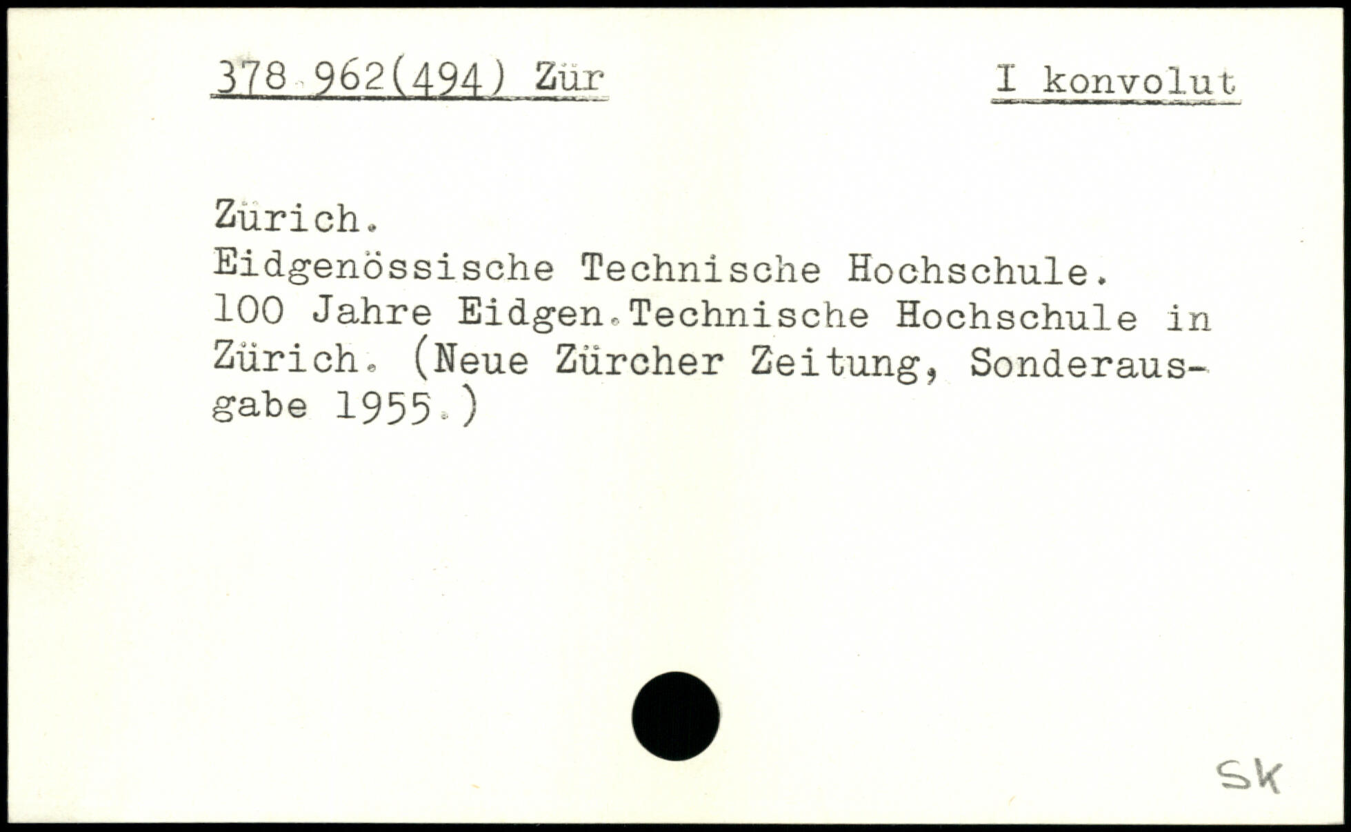 Eidgenössische Technische Hochschule. 100 Jahre Eidgen.Technische Hochschule in Zürich, (Neue Zürcher Zeitung, Sonderausgabe 1955.)