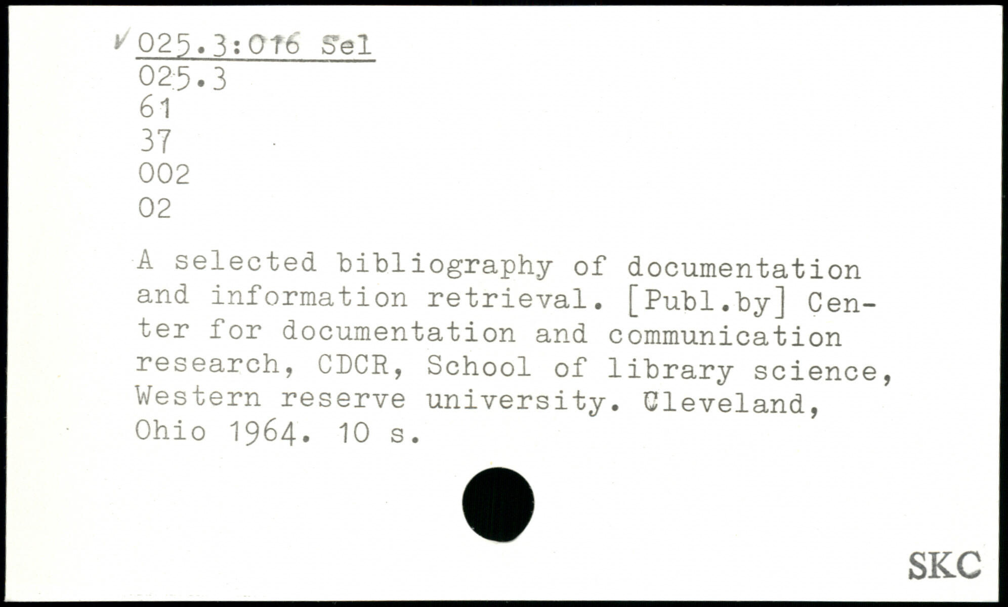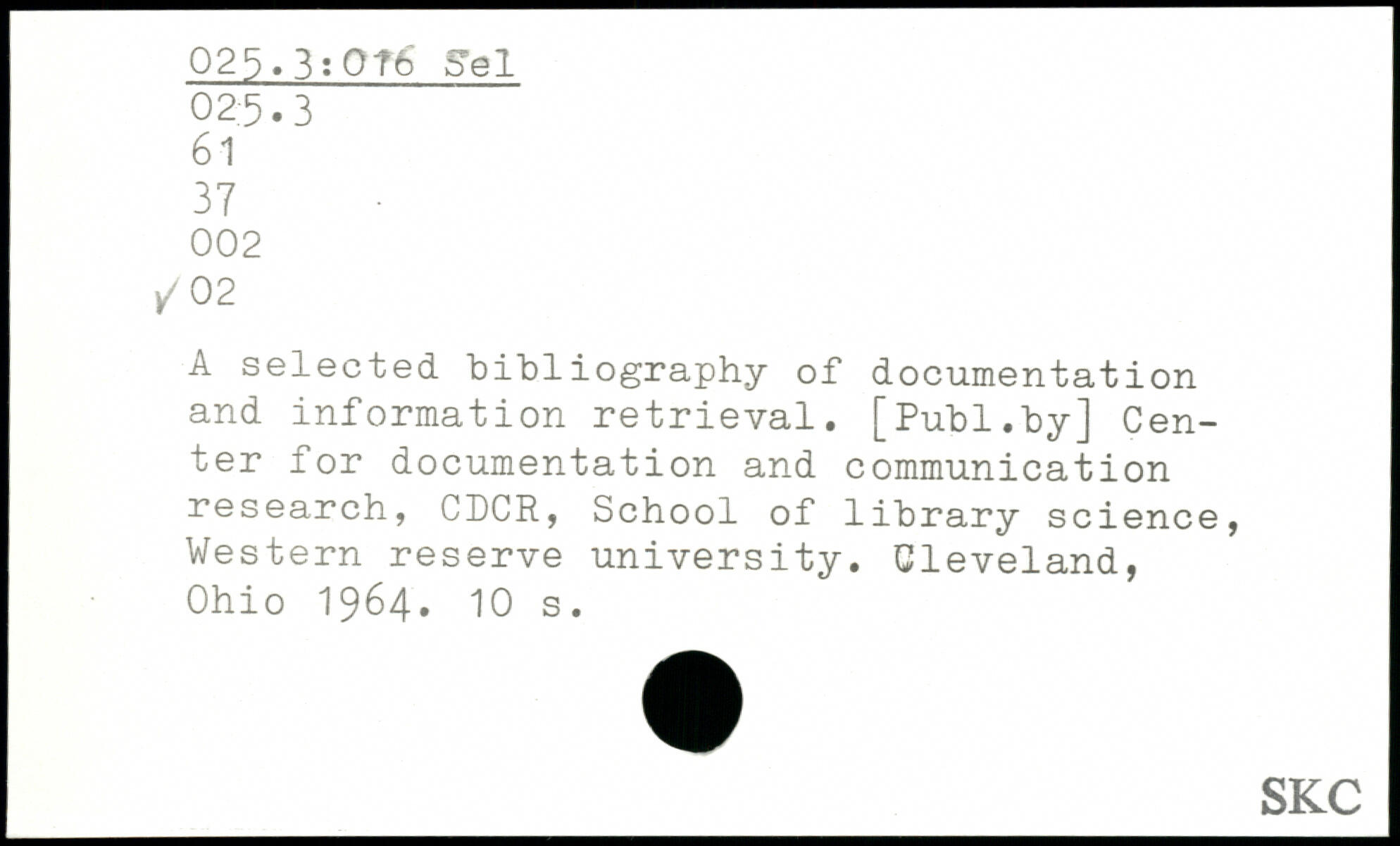 A selected bibliography of documentation and information retrieval.