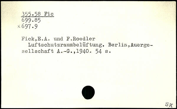 Luf tschutzrauinbelüf tung. Berlin,Auerge-sellschaft A.-G.,1940