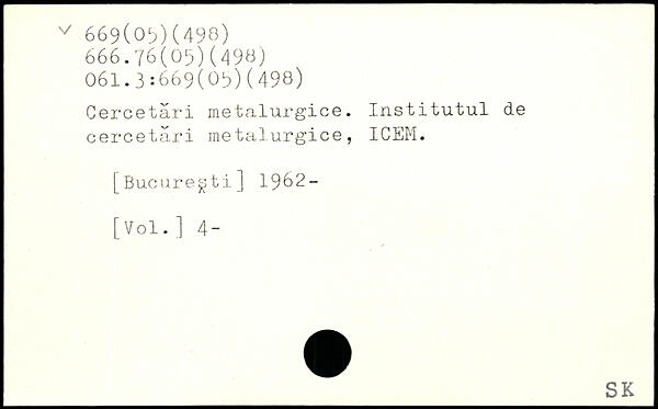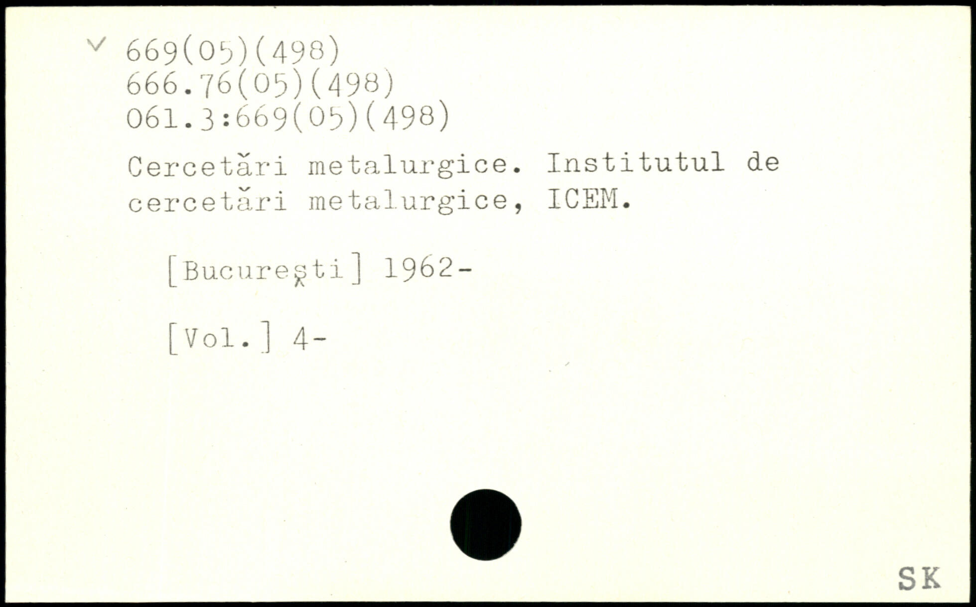 Cercetäri metalurgice. Institutul de cercetäri metalurgice, ICEM.